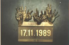 La lapide in memoria del giorno 17.11.1989 si trova in via Narodni nel centro di Praga 1 ed e´ opera di due artisti Miroslav Krátký e Otakar Příhoda. Le due dita alzate al cielo con il segno di vittoria furono uno dei simboli della rivoluzione di velluto.