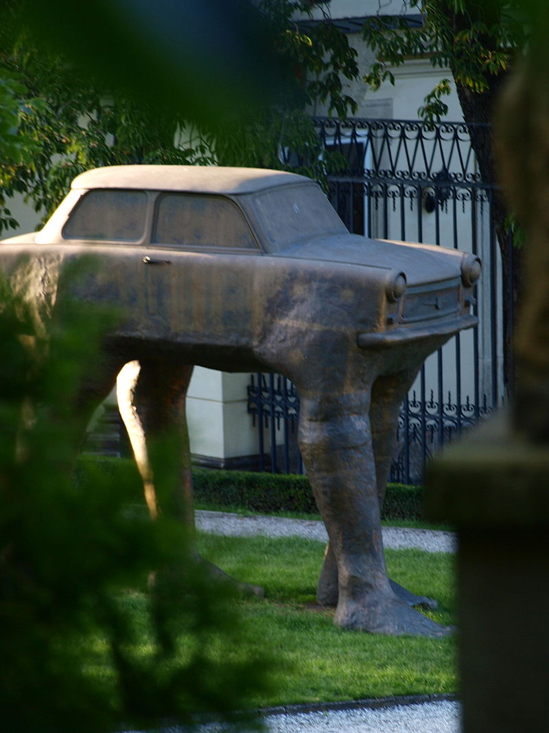 QUO VADIS – Si tratta della prima opera di Černý e risale al 1991. Fabbricato in plastica, che ritrae la celebre auto Trabant (automobile prodotta nell´ex Germania dell´Est, simbolo associato alla caduta del muro di Berlino del 1989) a cui sono state aggiunte 4 gambe.