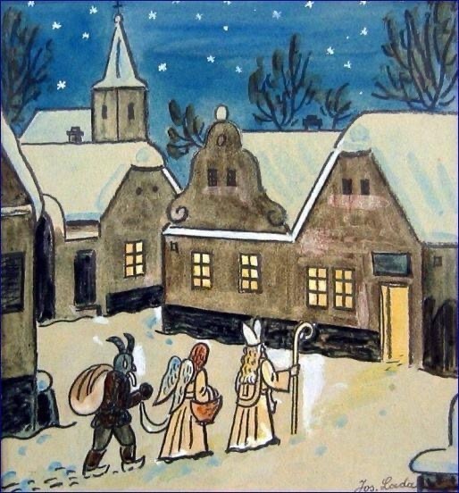 Non appena scende il buio, San Nicola accompagnato dagli angeli e dal diavolo, passa a visitare i bambini che con ansia attendono un regalo, mentre i diavoli vengono per rimproverare e spaventare i bambini disobbedienti. L´angelo ha una funzione mitigatrice. Dunque un misto di attesa e paura accompagna gli animi dei bambini, e non sono rari gli spaventi. Dolci, cioccolata, noci e frutta sono per i bambini buoni, patate e carbone sono per quelli cattivi – é normale ricevere sia dolci, che qualche carbone… in fondo tutti i bambini sono sia buoni che cattivi!