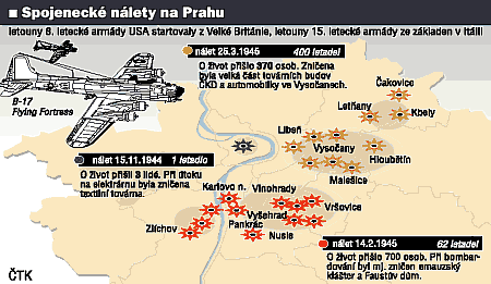 Oltre al bombardamento del 14 febbraio, Praga subì un altro attacco aereo durante la Seconda Guerra Mondiale. In particolare, il 25 marzo 1945, un altro bombardamento causò ulteriori danni e vittime, concentrandosi maggiormente sulle zone industriali di Praga 10 (Vrošovice) e Praga 5.