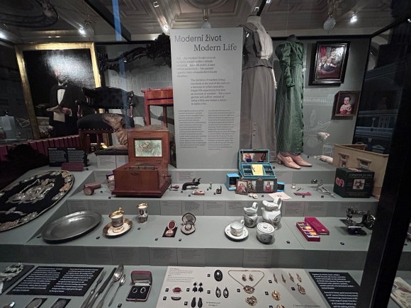 C’è un’aggiunta recente all’esposizione che vale la pena menzionare: il progetto Kroky pokroku (“Passi del progresso”) permette di indossare un visore VR e ritrovarsi in un vagone ferroviario, dove si incontrano personaggi storici reali in conversazione — František Křižík con Antonín Dvořák, Tomáš Bata con Olga Scheinpflugová, Jaroslav Heyrovský con Jan Werich. Non è un’attrazione per ragazzi: le conversazioni sono dense, a tratti ironica, e offrono una prospettiva originale sul senso del progresso.
