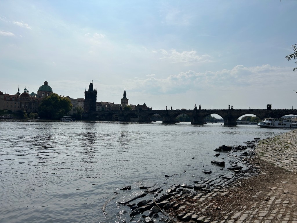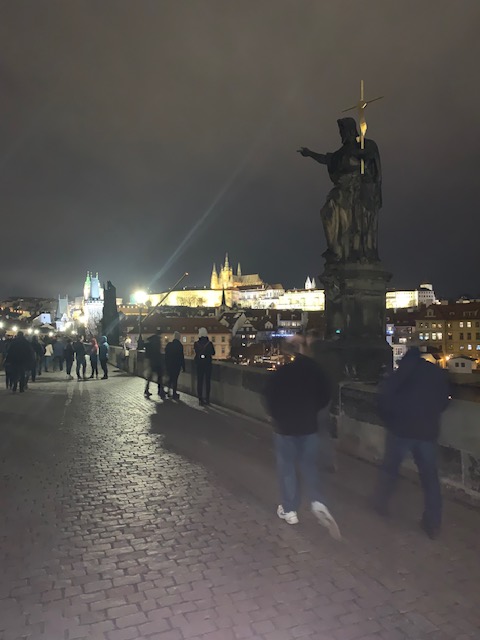 Il ponte Carlo è vuoto, senza persona, sembrano appena passati gli Svedesi nella Guerra dei trent’anni, uno sguardo al Castello e alla cattedrale di San Vito dove sventola la bandiera ceca, la collina di Petřín si sta riempiendo di verde come ogni primavera, mentre dal lato opposto si vede una scritta “ce la faremo” sull´Hanavský pavilon, mentre dietro, il metronomo è fermo immobile sdraiato a sinistra… il tempo si è davvero fermato, quando riprenderà?