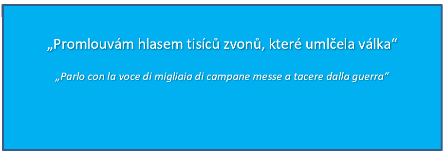 Non é una campana qualunque: ha il compito di ricordare le 9.801 campane che i Nazisti fecero raccogliere e convogliare nella zona di Maniny – Rohanský ostrov nel 1941 per poi trasferirle in Germania via fiume, fonderle e destinarle alla produzione di armi.