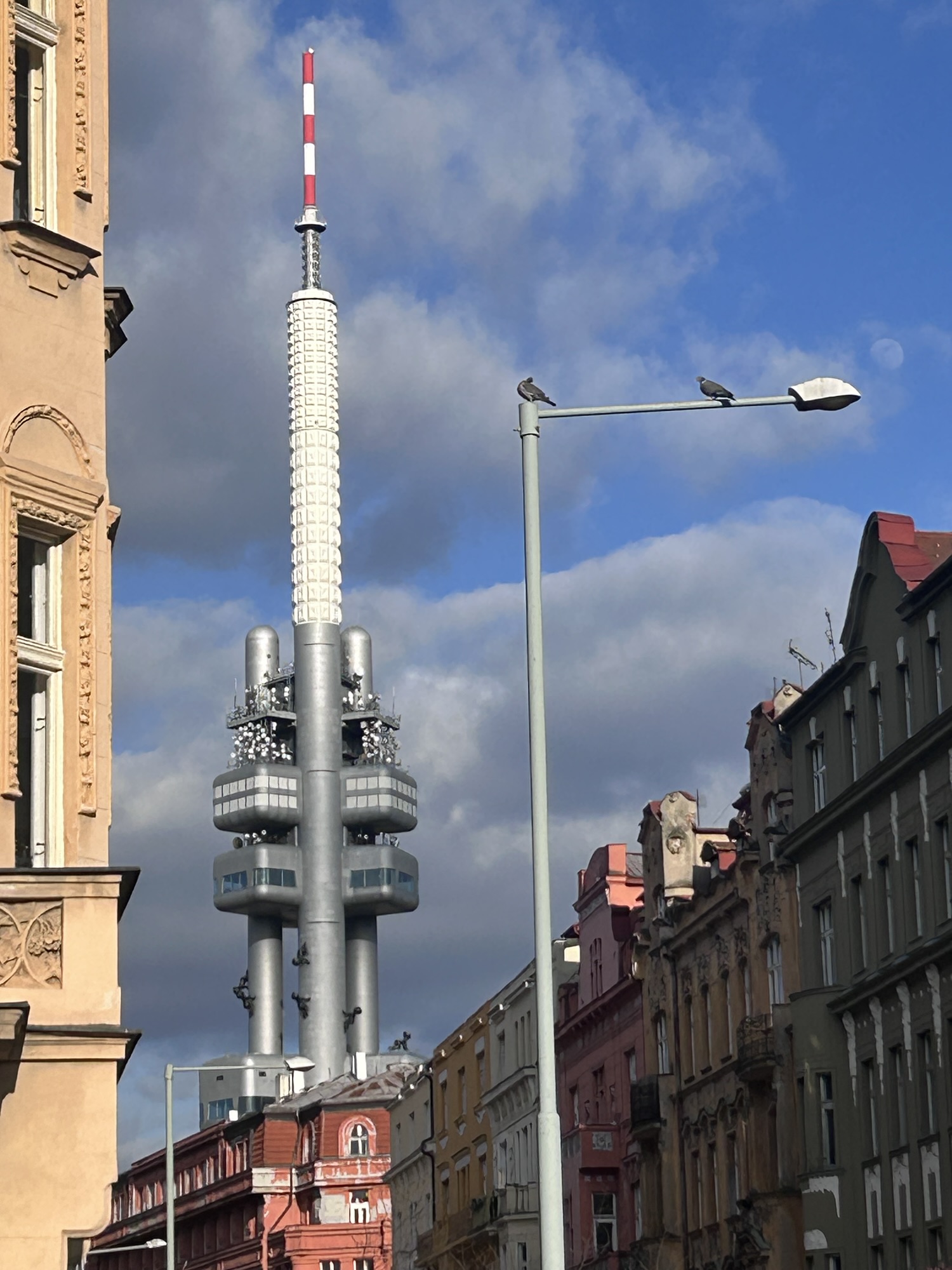 La torre delle trasmissioni di Žižkov dal 2001 é ornata di dieci statue di piccoli bambini a quattro zampe. Le dimensioni di questi „miminka“ (in ceco „piccoli bambini“) sono impressionanti: 350 cm di lungezza e 260 cm di altezza, il peso e´ attorno ad un quintale. Una caratteristica di tutte queste statue e´ che sono senza faccia, sostituita da un codice a barre.